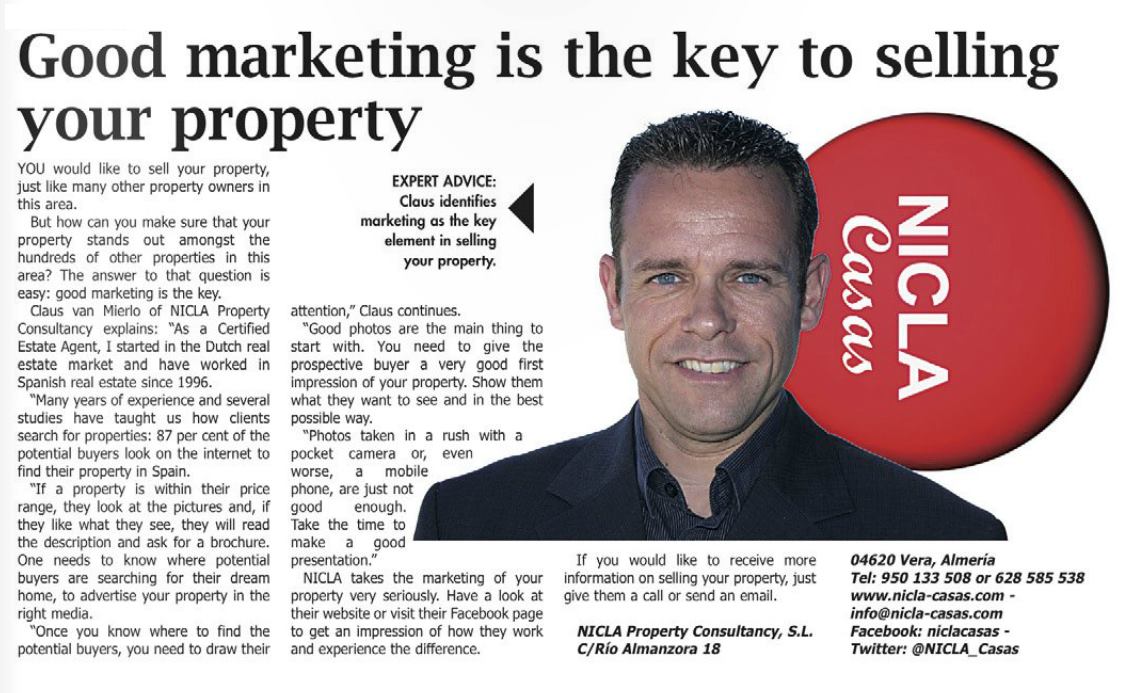 Mijn aanpak bij de verkoop van Spaanse woningen is ondertussen ook bij de Engelse verkopers bekend geworden. Hoewel deze manier van werken ook geen wonderen verricht waardoor de huizen binnen de kortste tijd verkocht worden, ziet men wel in dat er aandacht wordt besteed om de woningen zo optimaal mogelijk in de markt te zetten. Een goed begin, is het halve werk. Onderstaand artikel in de regionale Engelse krant helpt wellicht bij de algemene verbetering van de presentatie van het woningaanbod in Spanje.